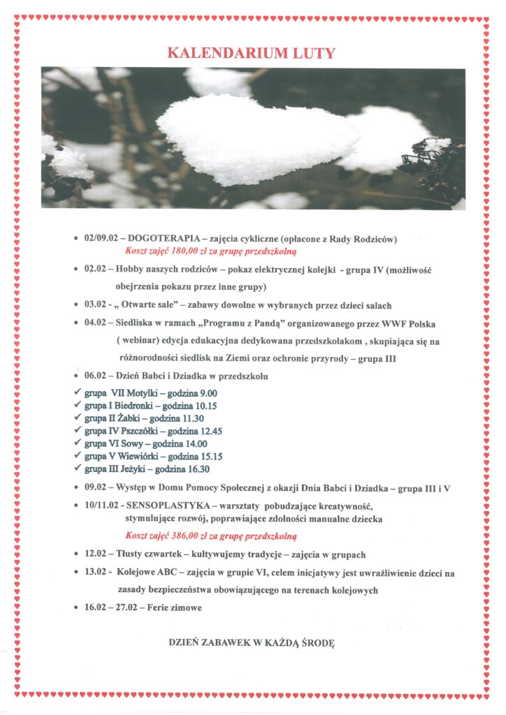 Prosimy o wcześniejsze zapisy na listy wyłożone w holu przedszkolnym.