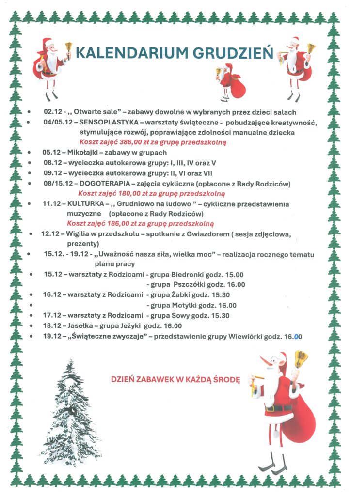 Koszt zajęć 386,00 zł za grupę przedszkolną