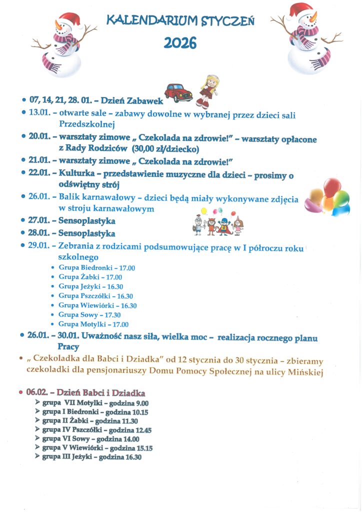 • 20.11 – Międzynarodowy Dzień Praw Dziecka – zajęcia w grupach